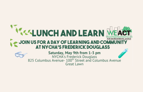 Join us on Saturday, May 9th from 1:00-3:00 PM to learn how to test soil for contaminants as well as how to make a garden bed. It’s also a great opportunity to connect with your community! This workshop will be held at NYCHA’s Frederick Douglass Houses, located at 825 Columbus Avenue. Perl Egendorf, Assistant Professor of Environmental Studies and Science at Pace University, will teach you how to test soil samples, showing you that science can be both fun and useful. Contact Marciely Alvarado at marciely.alvarado@weact.org with questions. RSVP